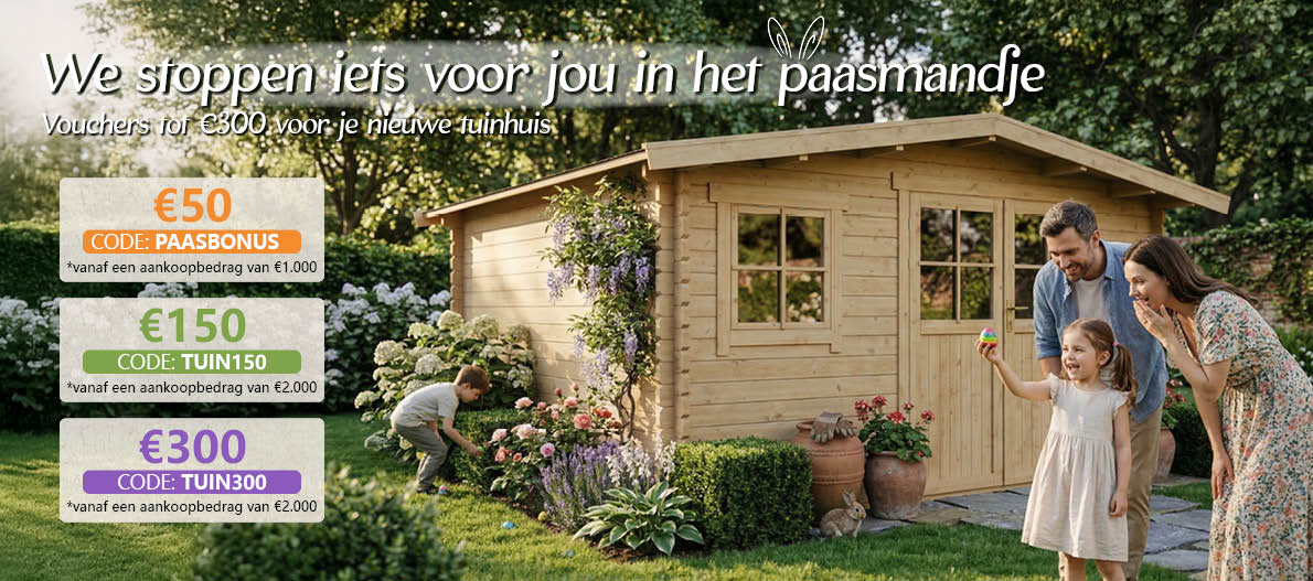 Pasen staat voor de deur en daarmee hét moment om je tuin een nieuw hoogtepunt te geven! Profiteer nu van onze exclusieve kortingsbonnen en ontdek onze hoogwaardige 28 mm tuinhuizen tegen aantrekkelijke prijzen. Onze tuinhuizen met 28 mm dikke wandplanken bieden de ideale combinatie van stabiliteit, duurzaamheid en veelzijdig gebruik. Of je het nu gebruikt als gezellige ontspanningsplek, praktische opbergruimte, thuiskantoor in de tuin of comfortabel gastenverblijf – richt je buitenruimte helemaal naar wens in. Wacht dus niet te lang! Jouw droomtuinhuis staat al op je te wachten.